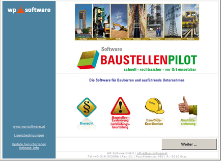 Nach der überprüfung wird der BaustellenPilot gestartet - das Startfenster erscheint: