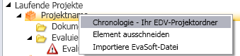 Die Chronologie kann im Strukturbaum Projekte mit Klick der rechten Maustaste auf ein Projekt aufgerufen werden: