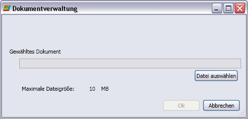 Hier haben Sie die Möglichkeit, einen Dateianhang hochzuladen. Klicken Sie dazu zuerst in das Feld und dann auf [+]. Es öffnet sich folgendes Fenster: