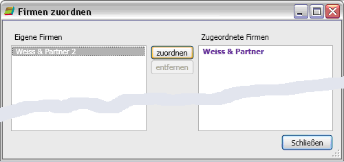 Im rechten Fenster sehen Sie die Firmen, die dem Benutzer zugeordnet worden sind.